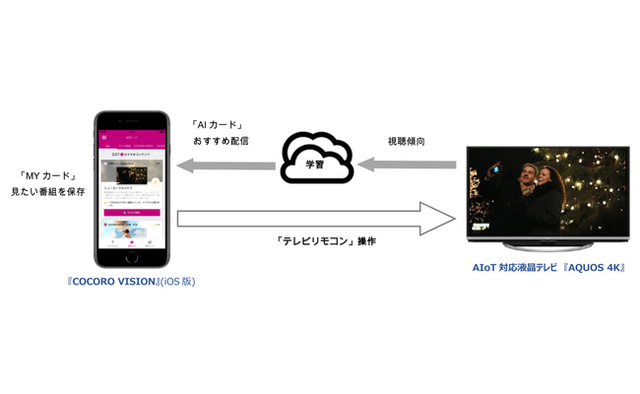 HOME > ニュース > AV&ホームシアターニュース AQUOS 4K「UH5/US5」シリーズに対応 シャープ、AIがオススメ番組をお知らせするiPhoneアプリ「COCORO VISION」提供開始 編集部:伊藤 麻衣 2018年02月21日 次の写真へ クラウド連携のイメージ図 次の写真へ この写真の記事へ 関連リンク 本件のニュースリリース シャープ