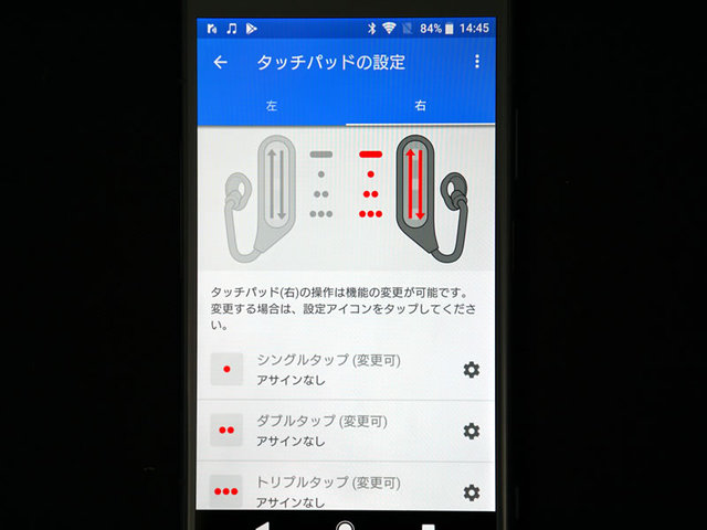 タッチパッドのタップ/長押しで割り当てる機能を変更可能