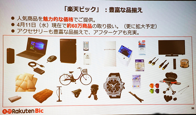 楽天ビックでは約60万点の商品を取り扱い。今後も拡大予定とのこと