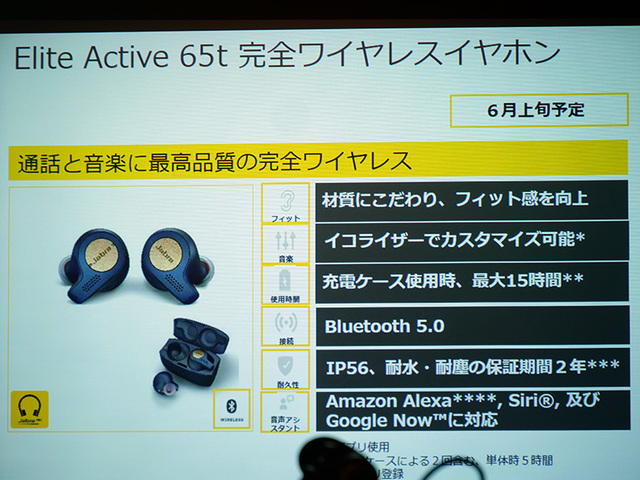 Jabra、完全ワイヤレス第3弾「Elite 65t」「Elite Active 65t」発売。Alexa/Siri/Google Now対応、防水・防塵