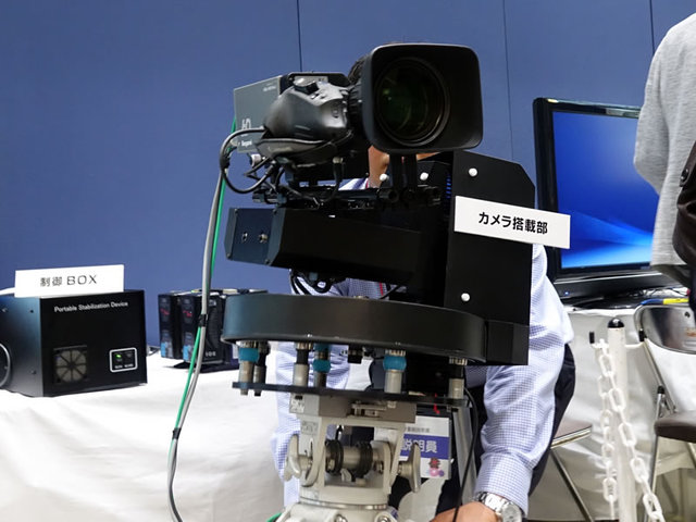 バッテリー駆動によって可搬型を実現したジンバル。従来の放送機器用ジンバルよりも大幅に小型軽量化し、防水仕様にすることでボートやトライアスロン等の撮影にも対応できるようにした