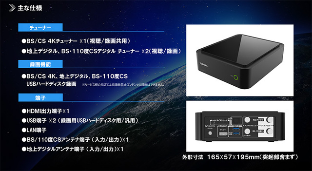 東芝、外付けの新4K衛星放送チューナー「TT-4K100」今秋発売。録画も対応、4万円前後