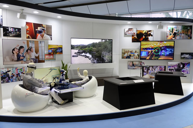 壁掛けの8Kテレビのほかテーブル型の裸眼3Dディスプレイ、ヘッドマウントディスプレイなど様々なデバイスを活用する将来イメージ