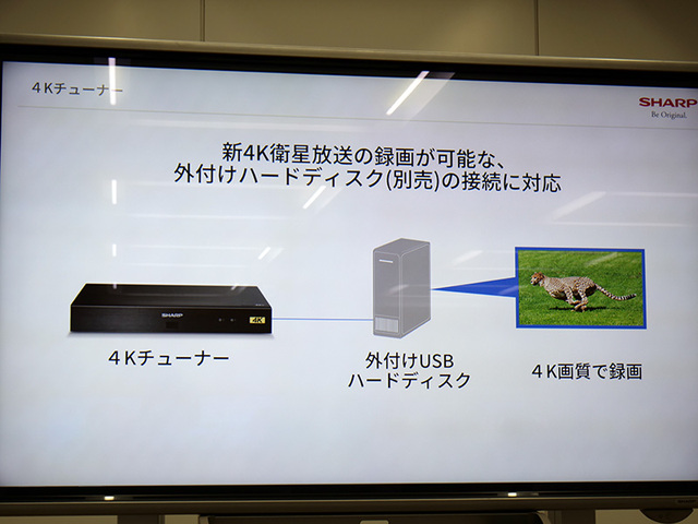 シャープ、新4K衛星放送を受信できる「4Kチューナー」を開発発表。11月下旬発売予定