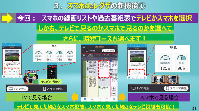 スマホで番組を探し、その番組をテレビとスマホのどちらで視聴するかなどを選択可能