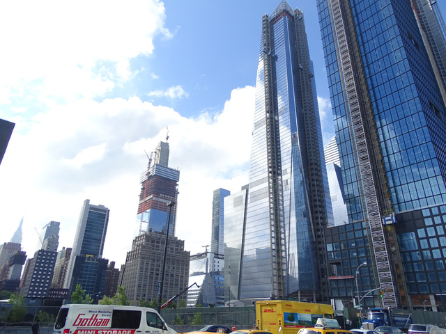 コンベンションセンターの周辺はいま猛烈な勢いで再開発が行われている。左側奥に見えるエンパイアステート・ビルディングの大きさがかすんでしまうほど、新しい高層ビルが次々と建設中だ