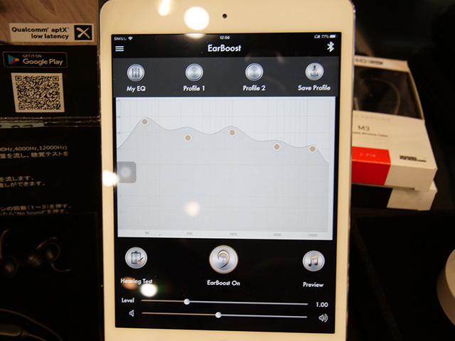 HOME > ニュース > AV&ホームシアターニュース V-MODAからも新製品 <ポタフェス>ソニー、広大なブースで最新ラインナップを紹介/GRADO初のBluetoothヘッドホン 編集部:風間雄介 2018年07月14日 前の写真へ 次の写真へ アプリで自分の聴覚に合わせた自動イコライジングが可能 前の写真へ 次の写真へ この写真の記事へ 関連リンク ポタフェス公式サイト ポタフェス2018 記事一覧