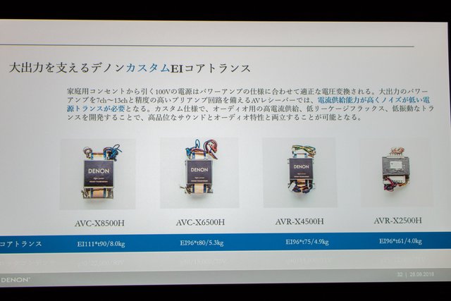 デノンAVアンプ 2018年モデルに搭載されたEIコアトランスの比較。いずれもメーカーと共同開発したカスタム品だ