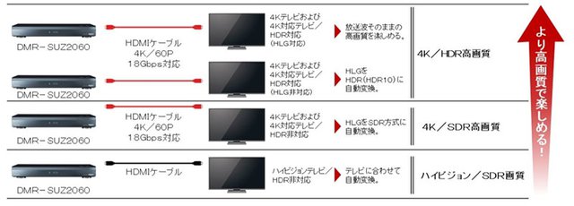 HOME > ニュース > AV&ホームシアターニュース 4K放送含む3番組同時録画が可能 パナソニック、新4K衛星放送対応レコーダー “4K DIGA”「SUZ2060」。12.8万円、11月16日発売 編集部:風間雄介 2018年09月20日 前の写真へ 4K/HDR(HLG)で送られてくる新4K衛星放送の番組を、テレビにあわせて自動変換してHDMI出力 前の写真へ この写真の記事へ 関連リンク DIGA製品情報 パナソニック 製品情報