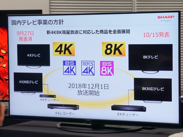 シャープ、世界初の8Kチューナー内蔵テレビ“AQUOS 8K”。80/70/60型の3サイズ