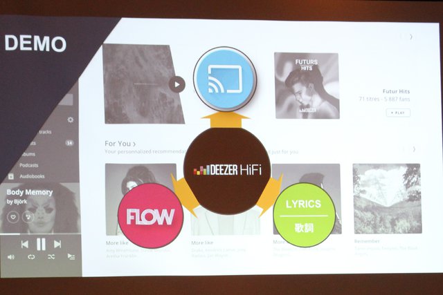 HOME > ニュース > AV&ホームシアターニュース 来年には4Gでのロスレス配信も <ヘッドホン祭>Deezer HiFi、国内唯一「CD品質で3,600万曲聴き放題」の魅力をアピール 編集部:小澤貴信 2018年10月28日 前の写真へ 次の写真へ Deezer HiFiの魅力としてFLOW機能や歌詞表示機能も挙げられた 前の写真へ 次の写真へ この写真の記事へ 関連リンク 「秋のヘッドフォン祭2018」 PHILE WEB 秋のヘッドホン祭 記事一覧