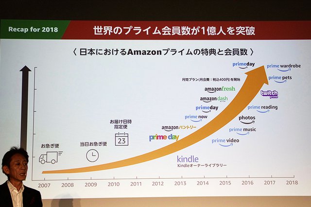 プライム会員はグローバル規模でグローバルで1億人を突破、日本でも新規加入者が増加しているという