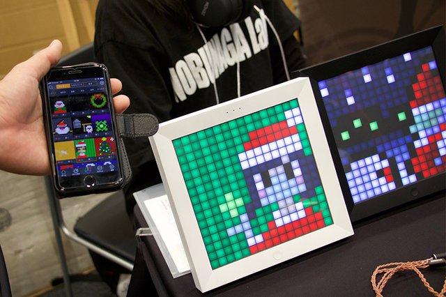 Divoomのピクセルアートフレーム「Pixoo」も展示。1月18日まで蔵人ファンディングにてプロジェクトを展開している
