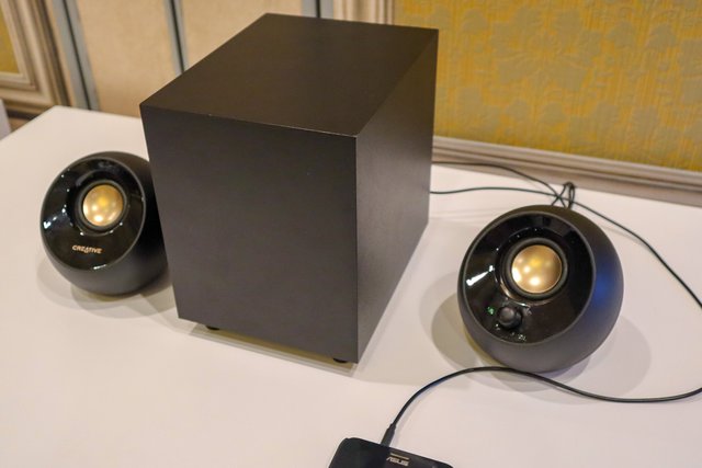 2.1chのPC用スピーカー「PEBBLE PLUS」。USBバスパワーで動作することが大きな特徴。価格は29.99ドルで、3〜4月の発売予定