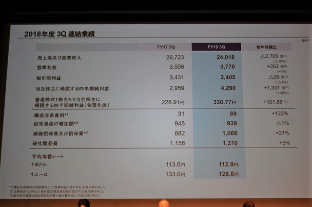 ソニー、18年度3Q決算は金融主因で10%減収に。営業利益も実質840億円の減益
