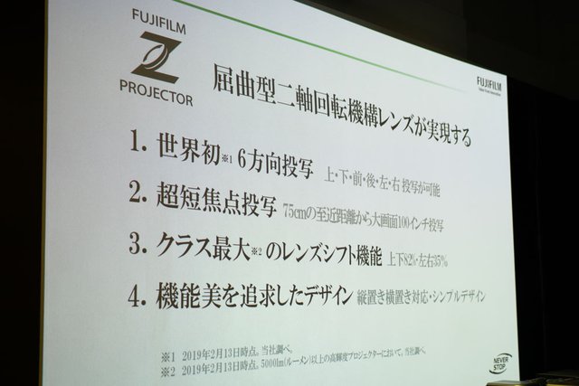 富士フイルムがプロジェクター市場に参入、世界初の2軸回転レンズ搭載モデル「FP-Z5000」