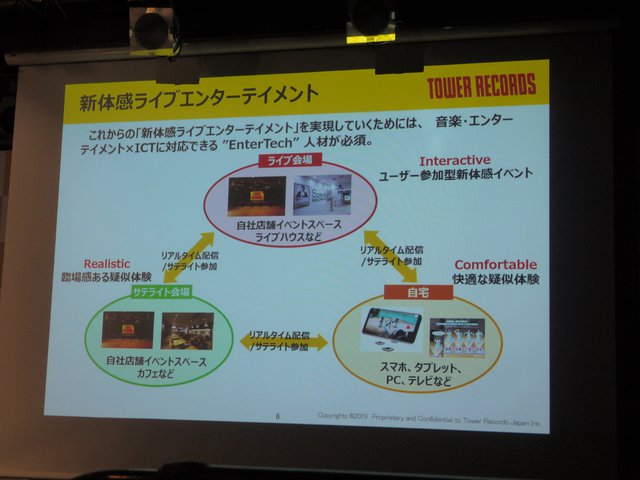 HOME > ニュース > AV&ホームシアターニュース 人材輩出で新市場を創造する タワレコの新規事業「TOWER ACADEMY」発表会詳細。5G化の加速で生み出すエンターテインメントとは Senka21編集部 徳田ゆかり 2019年02月18日 前の写真へ 次の写真へ 新体感ライブエンターテイメントを提供する 前の写真へ 次の写真へ この写真の記事へ 関連リンク タワーレコード、5G時代の音楽エンタメ人材を育成する「TOWER ACADEMY」開校 「TOWER ACADEMY」webサイト タワーレコード
