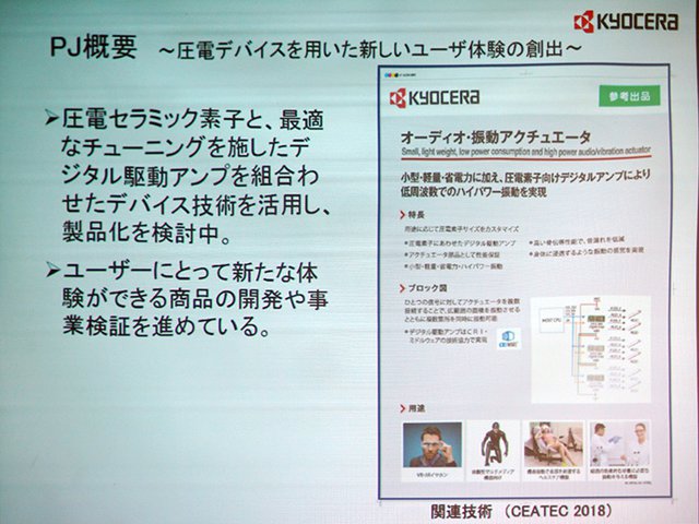 HOME > ニュース > AV&ホームシアターニュース お試しキャンペーンや東大との連携を発表 ソニー、スタートアップ支援を拡充。『品川バレー』発想で社内外問わない協創を推進 編集部:小野佳希 2019年02月20日 前の写真へ 次の写真へ 圧電セラミック素子とデジタル駆動アンプを組み合わせたデバイス技術を活用しての製品化を検討中 前の写真へ 次の写真へ この写真の記事へ 関連リンク Sony Startup AccelerationProgram 東京大学との連携についての詳細 ソニー