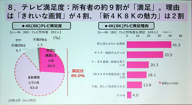 4K(8K)テレビ所有者のテレビへの満足度は非常に高い