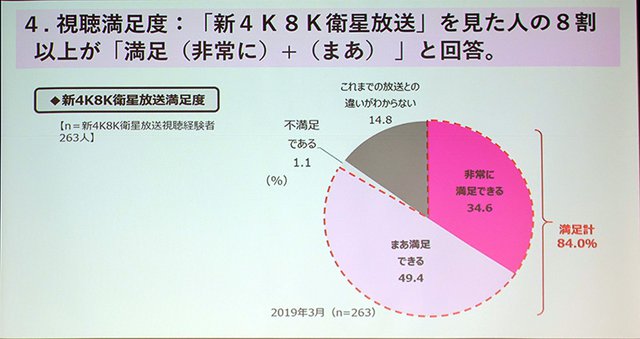 新4K8K衛星放送視聴経験者の満足度は非常に高い