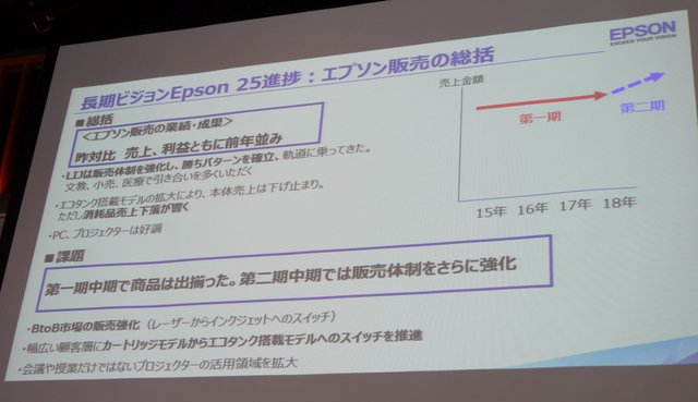 HOME > ニュース > AV&ホームシアターニュース 新社長鈴村文徳氏が語る新中期戦略 プロジェクターでコンパクトモデルも投入予告。モノからコト訴求にシフト、エプソン販売の新たな取り組み Senka21編集部 徳田ゆかり 2019年04月23日 前の写真へ 次の写真へ エプソン販売の第1期総括 前の写真へ 次の写真へ この写真の記事へ 関連リンク セイコーエプソン(株) エプソン販売(株)会社概要