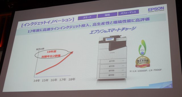 HOME > ニュース > AV&ホームシアターニュース 新社長鈴村文徳氏が語る新中期戦略 プロジェクターでコンパクトモデルも投入予告。モノからコト訴求にシフト、エプソン販売の新たな取り組み Senka21編集部 徳田ゆかり 2019年04月23日 前の写真へ 次の写真へ オフィス用スマートチャージが好評 前の写真へ 次の写真へ この写真の記事へ 関連リンク セイコーエプソン(株) エプソン販売(株)会社概要