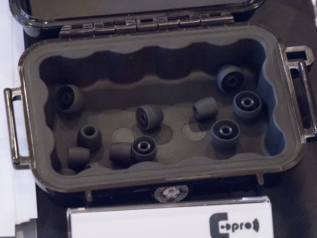 取り扱いを検討しているというイヤーピースブランド・ePro。先端が末広がりのホーン形状が特徴
