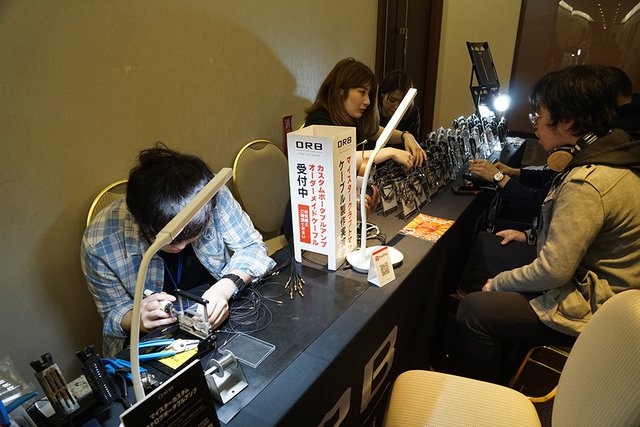 ORBブースでは、オーダーメードのケーブルをその場で作るコーナーが設けられていた