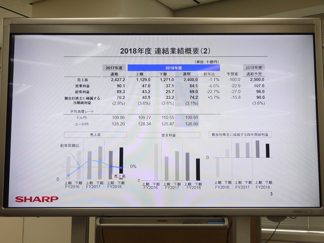 シャープが'18年度連結業績を発表。「量から質」への転換で業績予想から下振れも最終黒字を確保