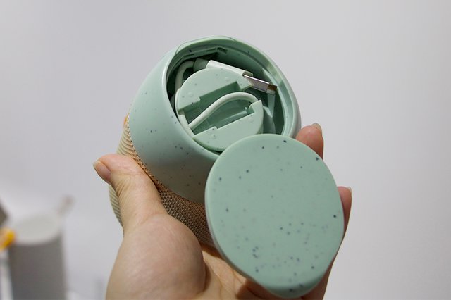 底面部のカバーを開けると、充電ケーブルが内蔵される