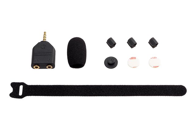 マイクとヘッドホンのプラグを4極プラグに変えられるヘッドセット変換アダプターなどのアクセサリーが付属する