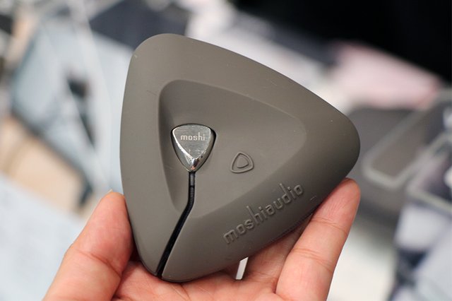 携帯用のシリコンケースも三角形。周囲にケーブルを巻き、本体は中央部に収納可能で利便性だけでなく、デザイン性も高い