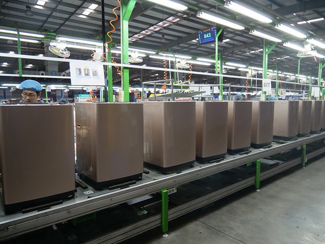 冷凍庫や冷蔵庫がハイスピードで組み立てられていく様子は圧巻だ