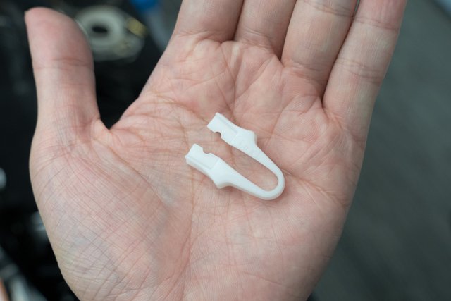 イヤホンお役立ちグッズのクリップ状器具。イヤホンのMMCXケーブルを、軽い力で無理なく取り外せる。ひっぱりによる断線も防止