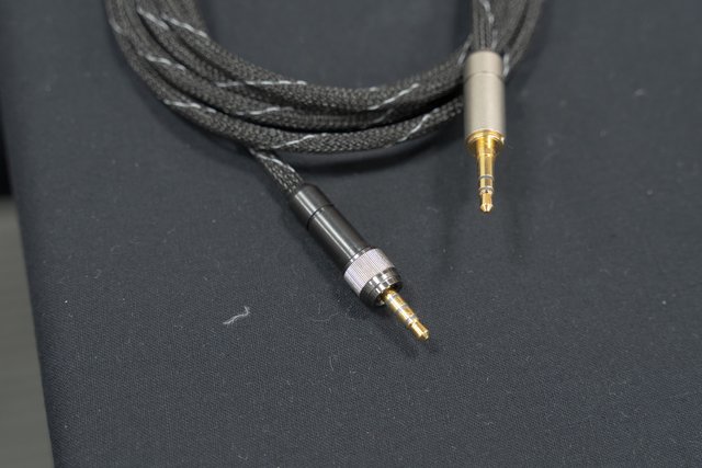 独自導体のケーブルや、ソニーのモニターヘッドホン「MDR-M1ST」に対応する固定ネジ付きプラグのケーブルを出展。プラグは自作ユーザー向けに単品販売も予定しているとのこと