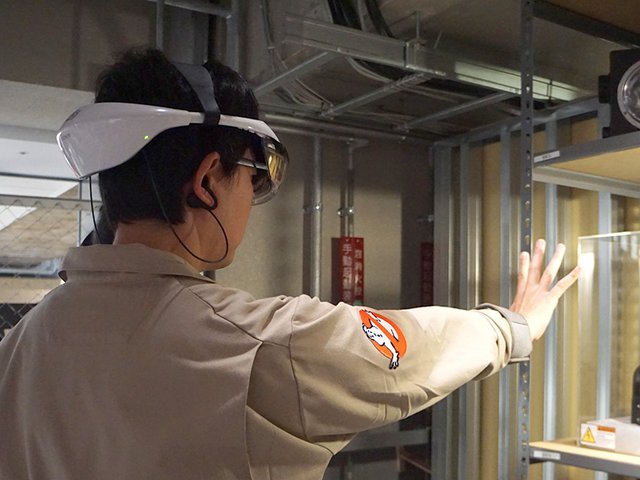 機体アップの撮影がNGだったため少々分かりづらいが記者がメガネの上にヘッドセットを装着しているのがご覧いただけるだろうか