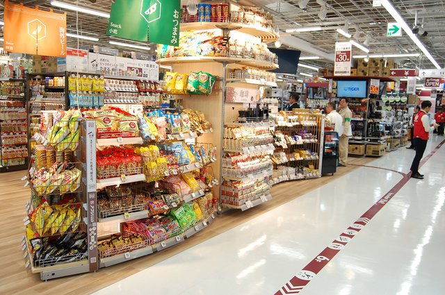酒類販売と調理家電は床材を木目としてエリアを差別化