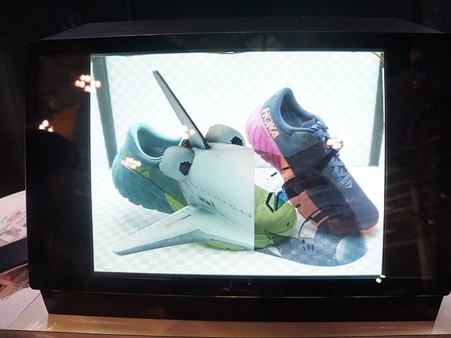 背後の靴(実物)を見せるためにコンテンツの色や透明度をタッチ操作で変更可能