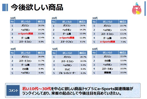 ヘッドホン・イヤホンも年代を問わず購入意欲が高い