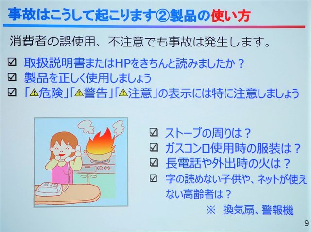 HOME > ニュース > AV&ホームシアターニュース 電気製品認証協議会が製品安全セミナーを開催 安心・安全な暮らしに知っておきたい電気製品の安全性。「Sマーク」取得による4つのメリットとは PHILE WEB ビジネス編集部・竹内純 2020年01月27日 前の写真へ 次の写真へ 「火器などでは特に、絶対にやってはいけないこと、危険なことはわかりやすく別に1枚の紙にまとめてほしい」と要望する三浦氏 前の写真へ 次の写真へ この写真の記事へ 関連リンク 電気製品認証協議会(SCEA) 一般財団法人 電気安全環境研究所(JET)