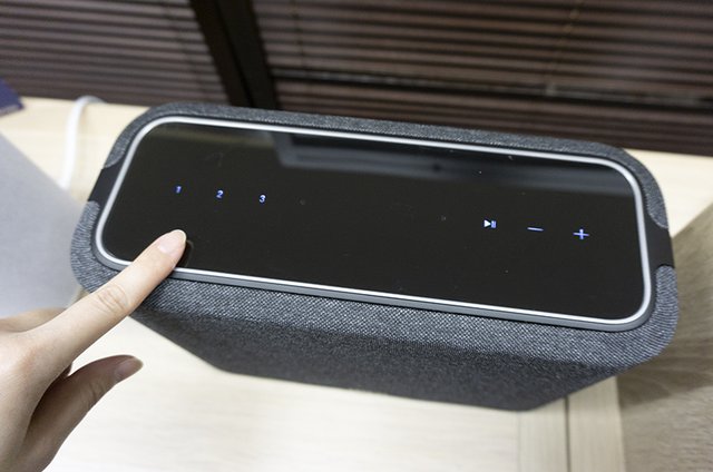 天面にタッチコントローラーを採用。気に入った入力ソースなどをワンタッチで呼び出せる3つのクイックセレクトボタン(写真左側)も備える