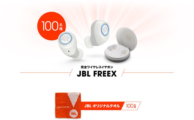 完全ワイヤレスイヤホン「FREE X」もしくはオリジナルタオルが各100名に当たる
