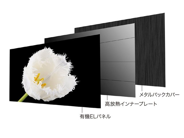 専用開発の有機ELパネルと独自開発の高放熱インナープレートを採用