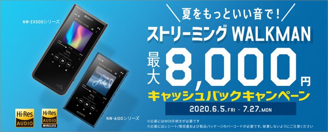 HOME > ニュース > AV&ホームシアターニュース 購入期間は6/5-7/27、応募期間は6/5-8/17 ソニー、ウォークマン「ZX500/A100」購入で最大8,000円がキャッシュバックされるキャンペーン 編集部:杉山康介 2020年06月02日 次の写真へ 「夏をもっといい音で!ストリーミングWALKMANキャッシュバックキャンペーン」6/5より開催 次の写真へ この写真の記事へ 関連リンク キャンペーン特設サイト ソニー