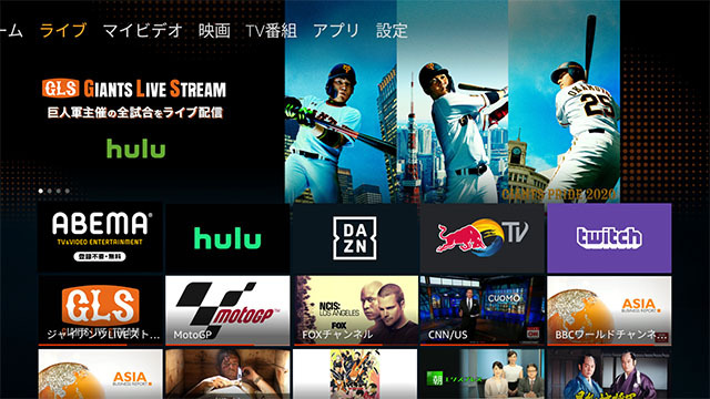 HOME > ニュース > AV&ホームシアターニュース 番組表で配信予定も確認できる Amazon Fire TVに「ライブ」タブが追加。スポーツやゲーム配信などへのアクセスが便利に 編集部:成藤 正宣 2020年09月10日 次の写真へ Amazon Fire TVのメニューにライブ配信専門の「ライブ」タブが追加 次の写真へ この写真の記事へ 関連リンク Amazon Amazon Fire TVシリーズはこちら