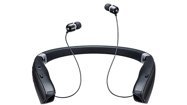 サンワサプライ、折りたたみ可能なイヤホン内蔵2WAYウェアラブルスピーカー