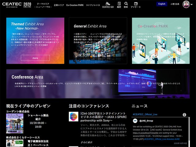 HOME > ニュース > AV&ホームシアターニュース 5G/8K/自動運転関連展示なども 「CEATEC」、初のオンラインで開幕。シャープ「透明ディスプレイ」など各社がニューノーマル社会を意識 ファイルウェブ編集部 2020年10月19日 次の写真へ 今年のCEATECは初のオンライン開催となる 次の写真へ この写真の記事へ 関連リンク CEATEC 2020 ONLINE