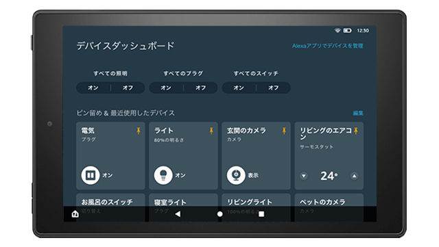 HOME > ニュース > AV&ホームシアターニュース 本日からソフトウェアアップデートを順次配信 Amazon、Fireタブレットにスマート家電コントロール画面「デバイスダッシュボード」追加 編集部:成藤 正宣 2020年10月28日 Fireタブレットに、Alexa対応スマートホーム製品を制御できるインターフェース「デバイスダッシュボード」が追加 この写真の記事へ 関連リンク Amazonデバイス