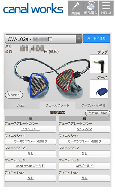 公式Webサイト上のシミュレーターでデザインを確認できる(画像はカスタムIEM用のもの)