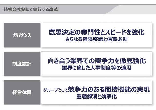 持株会社制移行の詳細などを説明